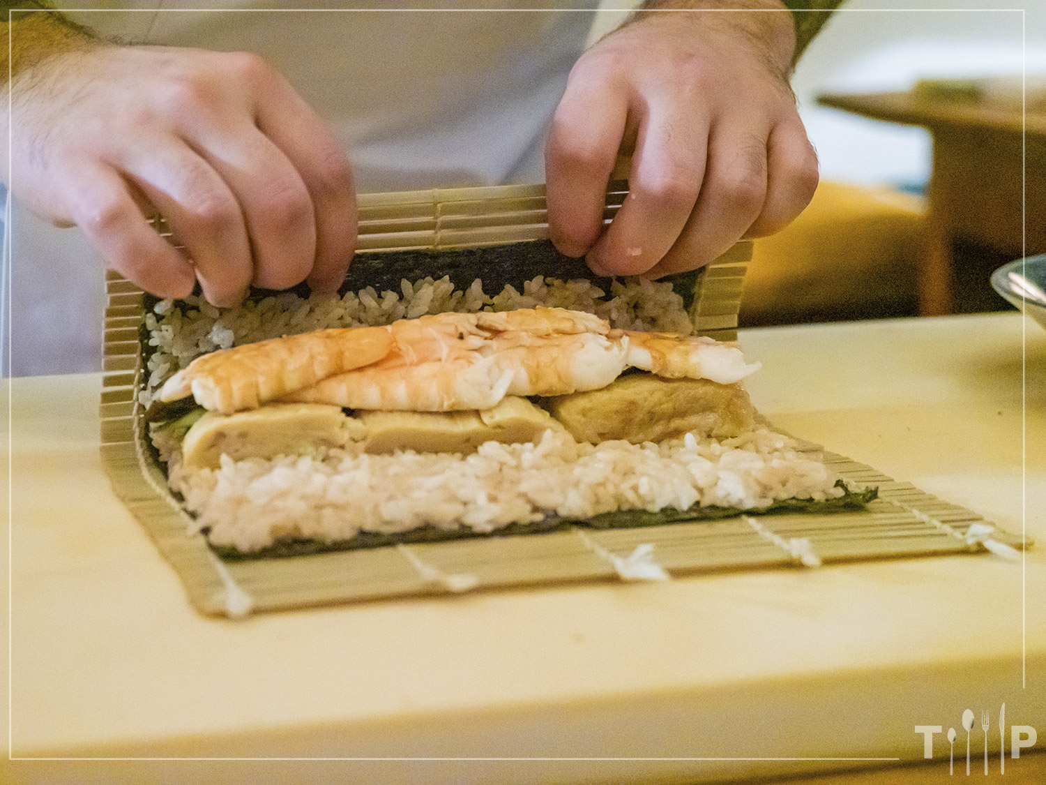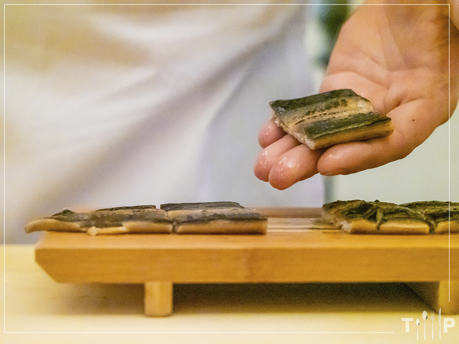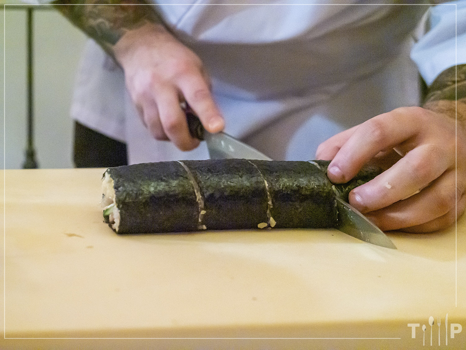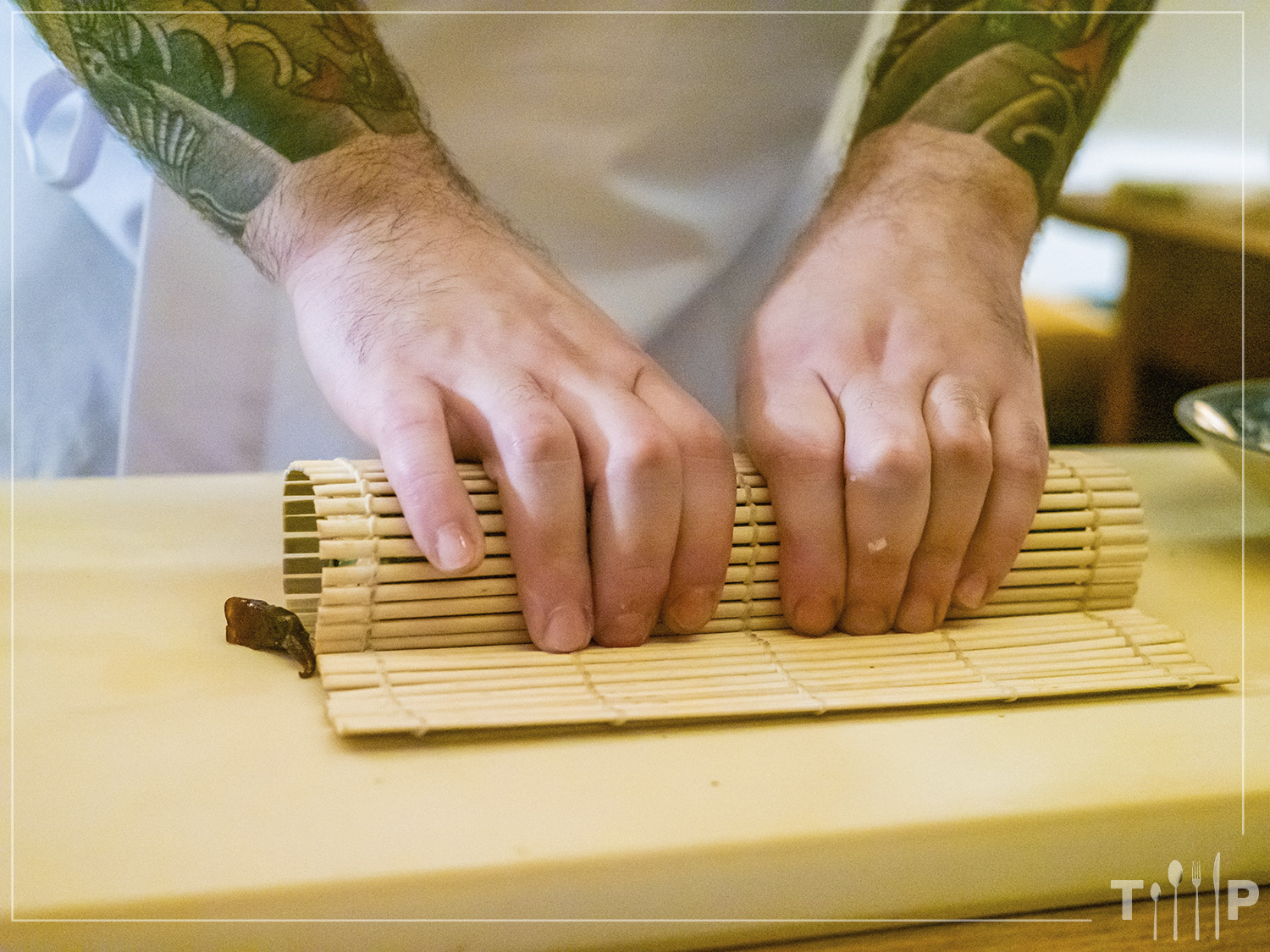 El pase del futomaki fue otro de nuestros bocados favoritos en ambas visitas, no solo porque es una elaboración que nos encanta sino porque da tiempo a hacer un alto entre bocado y bocado y mantener una conversación más larga con los otros comensales y el itamae. Un maki que bien nos habríamos comido entero en vez de solo una ‘rodaja’.