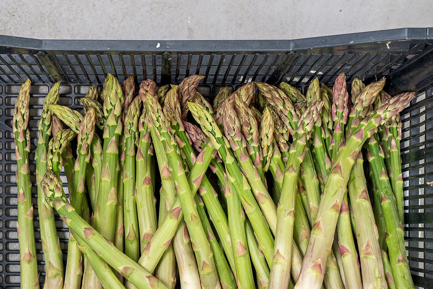 Hasta hace no mucho solo cultivaban espárragos y fue Víctor quién les animó a ampliar la producción con otras verduras para abastecer a su restaurante y ya de paso a otros de la región. Hoy, además de los espárragos, cultivan guisantes y alcachofas baby.