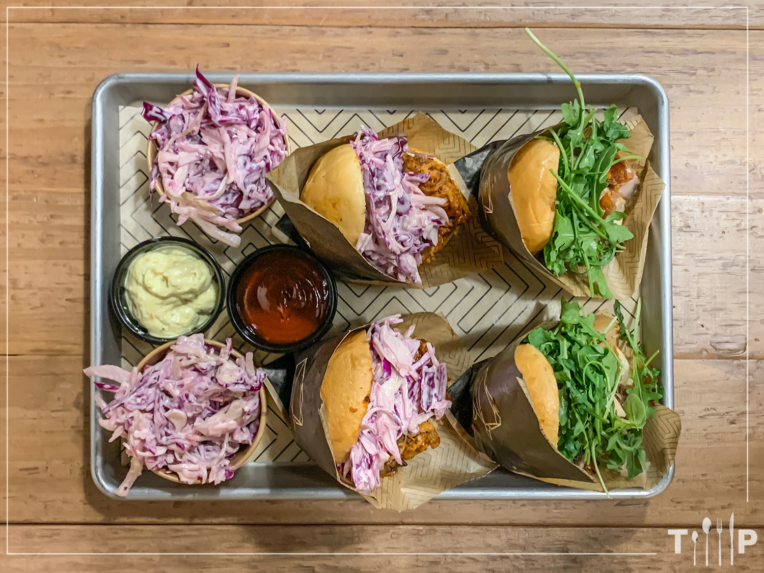 Ya es hora de hablar con propiedad, sanduches y no sándwiches porque los dueños de Los Costilla son venezolanos. Como decíamos antes, las opciones son tres —en tamaño normal y pequeños—: pollo frito, pulled pork y porchetta.