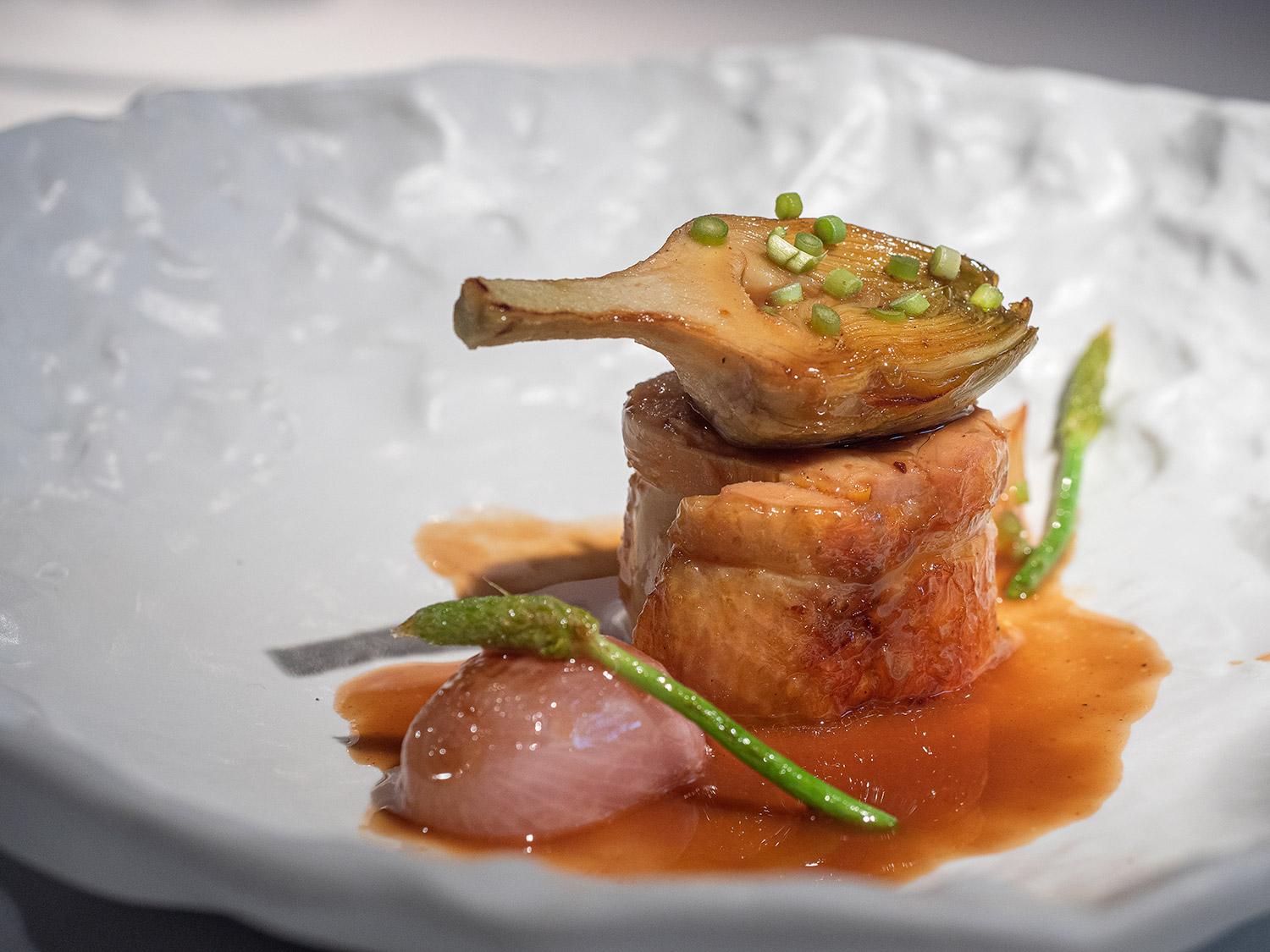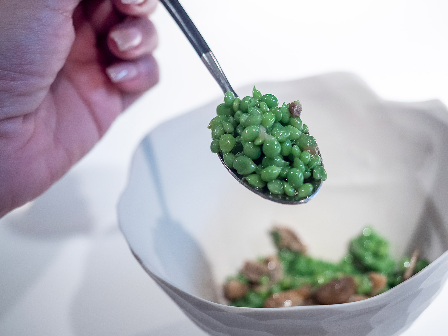 Foie con frutos rojos, uno de los platos que seguramente tarde en desaparecer de la carta del restaurante Trigo; ‘los espárragos que querían ser calçots’, un guiño a otro producto excepcional que ya está fuera de temporada con otro que estaba en plena explosión; y unos increíbles guisantes con setas de temporada, uno de los platos favoritos de muchos de los amigos que compartimos mesa.