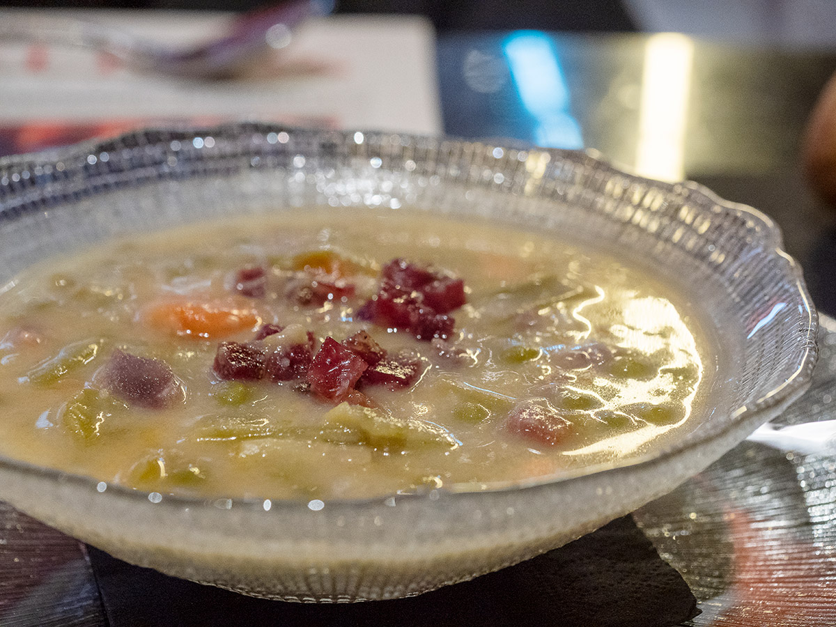 Acabamos pidiendo un carpaccio de presa Joselito, y no soy muy amigo yo de carpaccios, pero como siempre me acabo comiéndome mis palabras decidí probar ya que es lo que quería mi pareja y…. ¡me comí mis palabras y el carpaccio, que estaba de muerte! Las croquetas de jamón Joselito es algo que no iba a pasar ni de broma, imposible no pedir croquetas y mucho menos en un sitio como éste; muy cremosas, muy sabrosas. Seguimos con unas empanadillas de abanico Joselito, recuerdos de madre pero más ricas (que no me oiga la mía :|). La menestra de verduras es un plato tan maltratado y que me gusta tanto que aquí esperaba que la hiciesen como debe ser una buena menestra; la hacen con salchichón, cremosa, muy rica, el toque del salchichón es ideal.